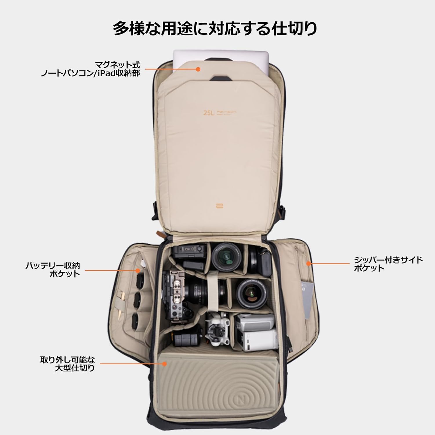 PGYTECH OneMo 2 BackPack ワンモーツー バックパック 25L カメラバッグ ドローンバッグ 大容量 防滴 YKKファスナー 男性 父 彼氏 父の日