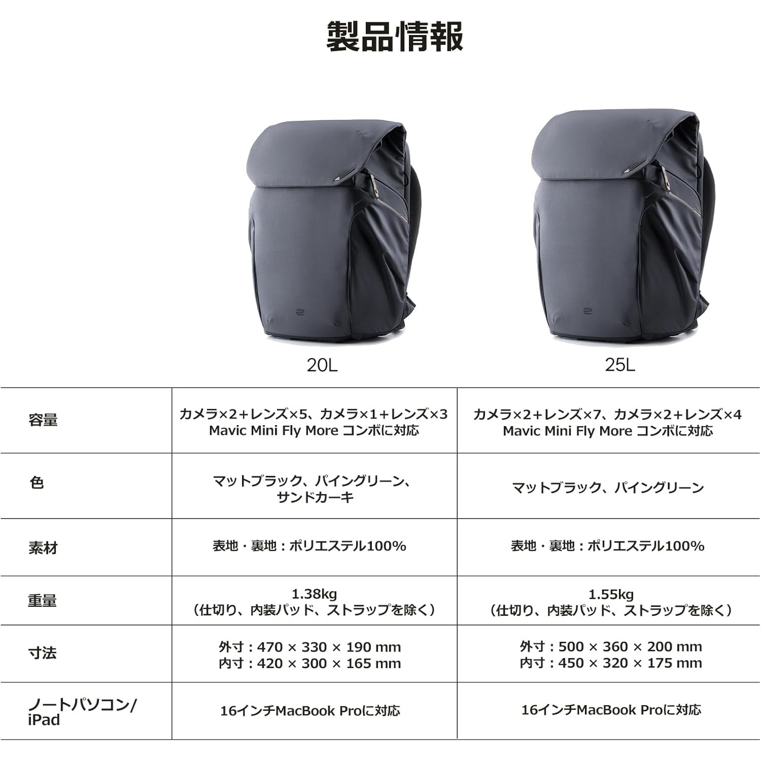 PGYTECH OneGo 2 BackPack ワンゴー2 バックパック マットブラック 25L カメラバッグ ビジネスバッグ 旅行 スタイリッシュ 軽量 男性 父 彼氏 父の日